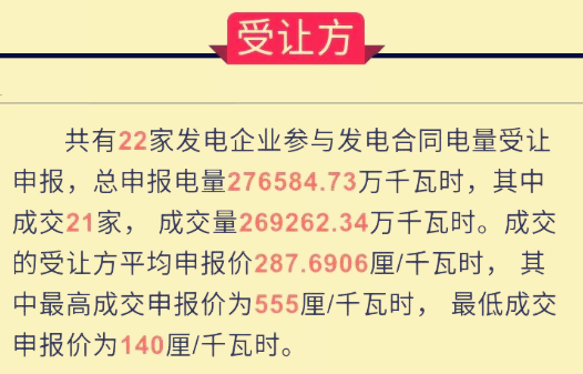 伴隨著圣誕的氣息,昨天上午,廣東電力交易中心組織開展的明年一月份發(fā)電交易合同集中轉(zhuǎn)讓交易一片火熱,不管是出讓方還是受讓方,對本次交易參與積極性很高,根據(jù)不完全統(tǒng)計,電力交易集中轉(zhuǎn)讓的總成交量達到260000萬千瓦時。