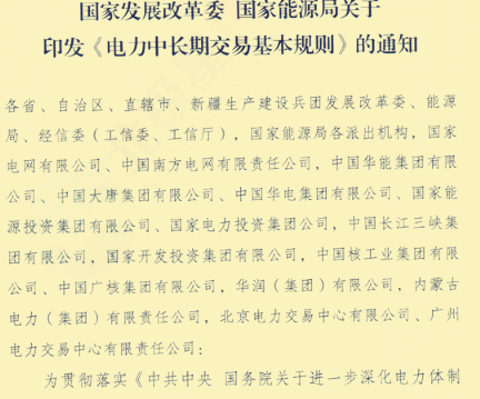 日前,國(guó)家能源局、發(fā)改委聯(lián)合出臺(tái)《電力中長(zhǎng)期交易基本規(guī)則》,新規(guī)涉及的范圍很廣,對(duì)售電公司又提出來更多的要求,新規(guī)要求對(duì)售電公司承擔(dān)清潔能源消納責(zé)任。