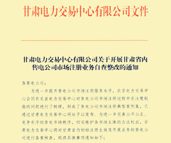 為了進(jìn)一步提高甘肅售電公司市場注冊服務(wù)水平,讓售電市場更加公平有序,維護(hù)售電市場主體的合法利益,甘肅電力交易中心將對省內(nèi)初始注冊生效及開展業(yè)務(wù)的售電公司進(jìn)行備案核查,售電公司開展自查整改工作。